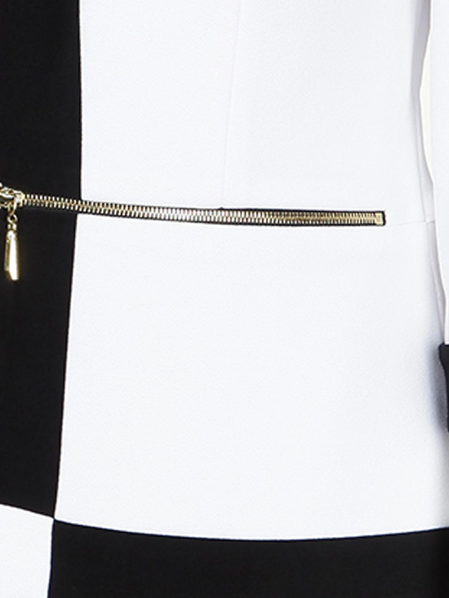 Monikäyttöinen valkoinen jakku mustin tehostein sekä vetoketjusomistein - juhlaan ja arkeen.