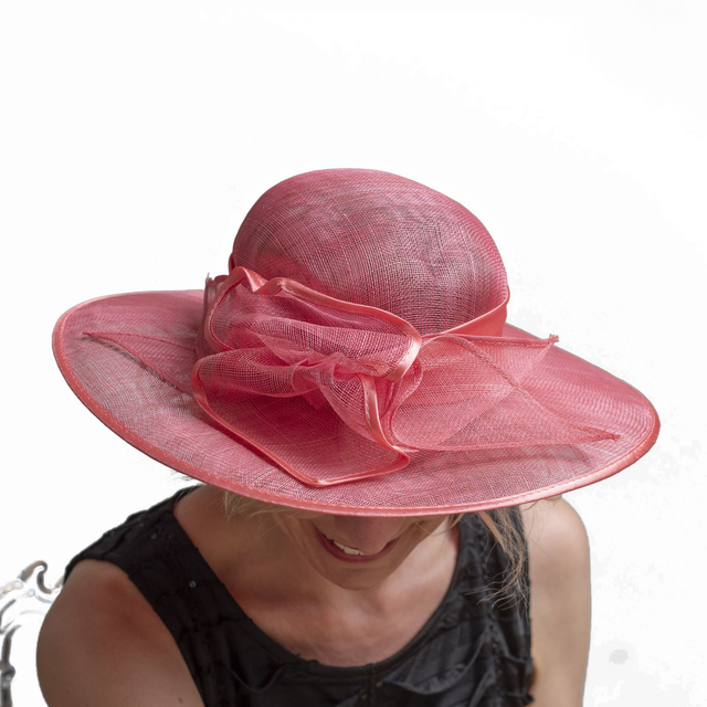 Korallinpunainen juhlahattu rusettimaisella somisteella