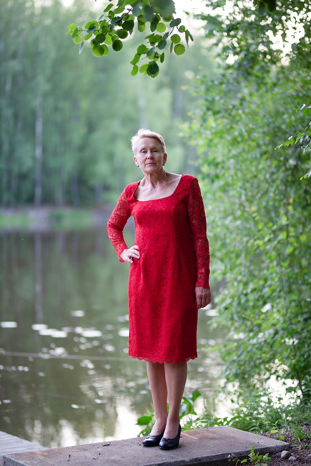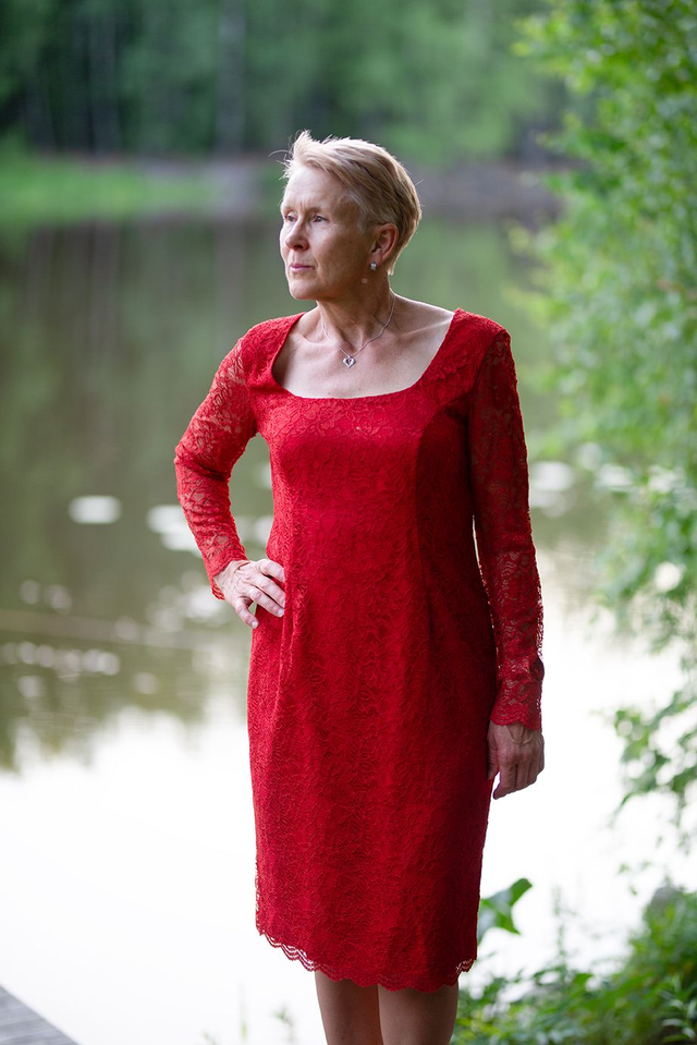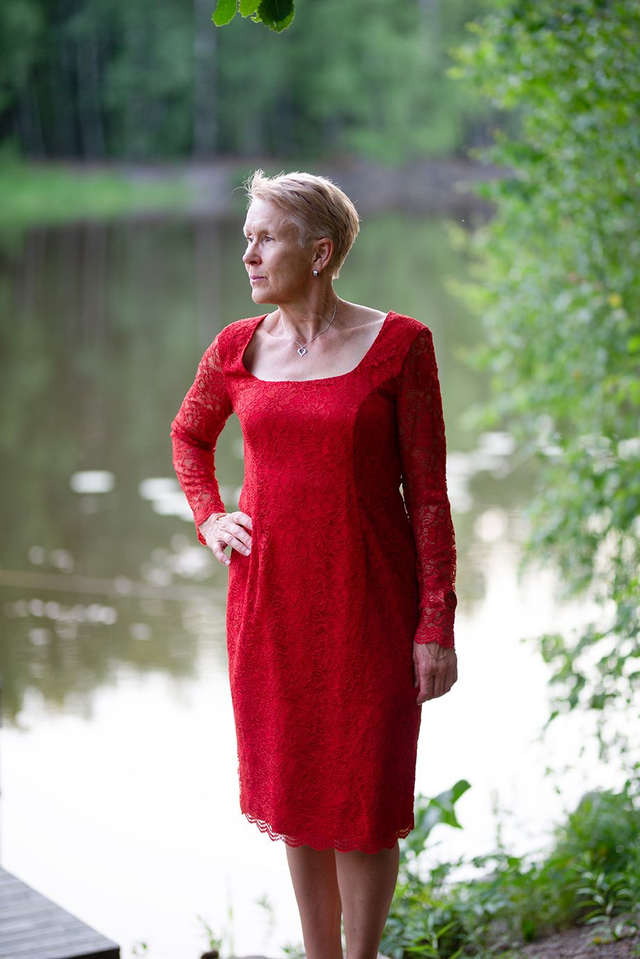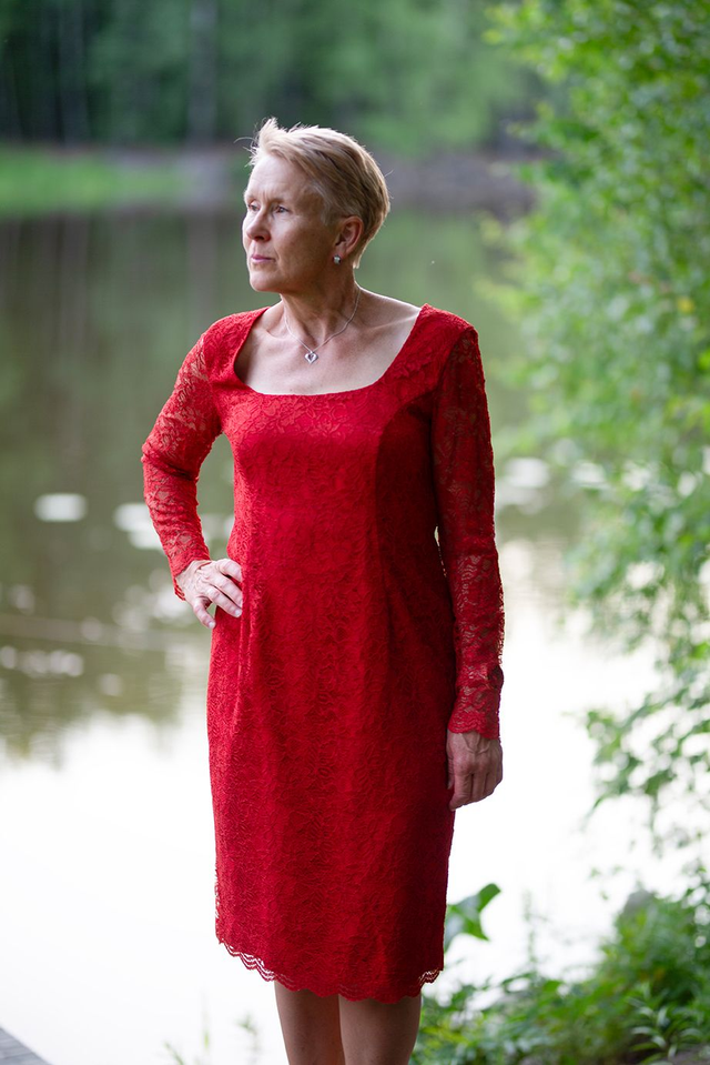 Michaela Louisa punainen pitsimekko pitkällä hihalla - koko 42
