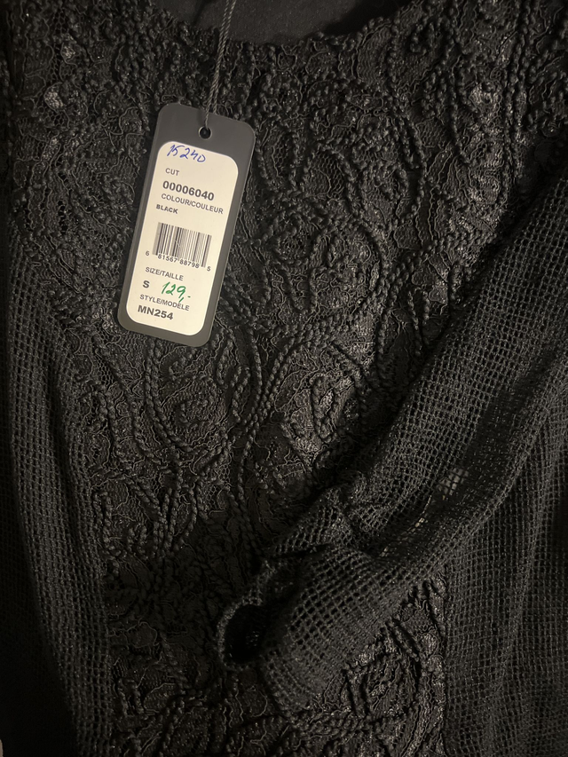 Picadilly musta hihallinen tunika, jonka etuosa on pitsimäistä kukkakuosia ja hihat verkkomaiset.